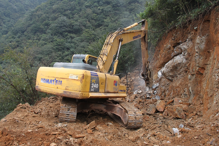 該項目是攸縣風(fēng)電項目的配套工程,要在陡峭的山巖上開鑿一條6米寬的道路,為攸縣風(fēng)電項目后期的設(shè)備運輸,維護等提供通道。就是在這樣艱苦的條件下,攸縣風(fēng)電項目部開始了他們?yōu)轱L(fēng)電項目綠色環(huán)保清潔能源建設(shè)事業(yè)助力的先鋒拓荒之旅。這條9.1KM沿山盤桓路的每一環(huán),每一彎,每一段都見證著他們艱辛不懼、勇氣擔(dān)當(dāng)?shù)匿伮饭适隆?/span>