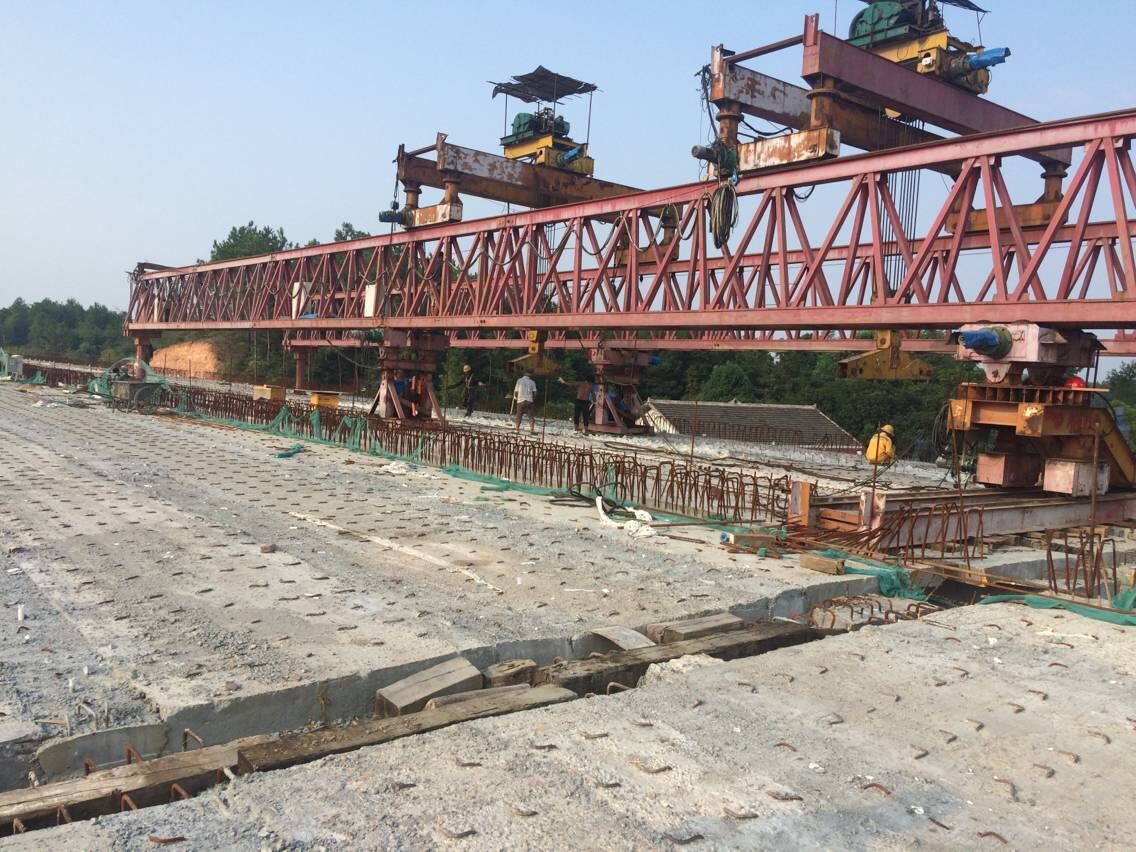 2#梁場T梁預制完成270片,架設完成260片,空心板預制完成99片,架設完成90片。白露山莊大橋空心板預制完成87片,剩余53片,架設完成80片,剩余60片。中陽特大橋T梁預制完成367片,剩余21片,架設完成258片,剩余30片。中陽分離立體式交橋完成橋面現(xiàn)澆層,婁底東互通跨線橋全部完成。