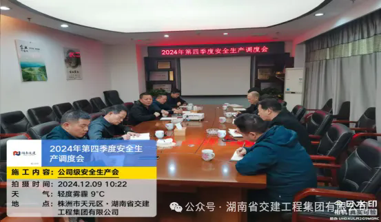 2024年12月9日,湖南省交建工程集團(tuán)有限公司董事長謝志方主持召開了2024年第四季度安全生產(chǎn)調(diào)度會,強(qiáng)調(diào)安全生產(chǎn)是公司經(jīng)營管理的重中之重,必須緊抓不懈,要求嚴(yán)格落實(shí)安全生產(chǎn)責(zé)任制,并部署安全生產(chǎn)具體工作。董事長提出,在歲末年初之際,各部門(分公司)更要精心組織開展安全隱患大排查大整治活動,重點(diǎn)檢查施工現(xiàn)場的機(jī)械設(shè)備、臨時用電、高處作業(yè)等環(huán)節(jié),對排查出的隱患問題,及時制定整改方案,落實(shí)責(zé)任人,限期整改,確保隱患徹底消除。
