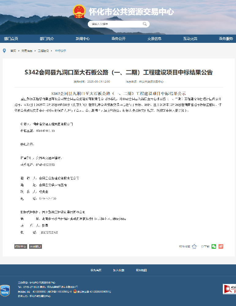 2025年3月4日,懷化市公共資源交易中心發(fā)布了S342會(huì)同縣九洞口至大石板公路(一、二期)工程建設(shè)項(xiàng)目中標(biāo)結(jié)果公告顯示,中標(biāo)人:湖南省交建工程集團(tuán)有限公司,中標(biāo)金額:150142410.00元,工期730日歷天。本次招標(biāo)采用公開招標(biāo)方式,經(jīng)過嚴(yán)格的技術(shù)評(píng)審和商務(wù)評(píng)審,最終湖南省交建工程集團(tuán)有限公司憑借優(yōu)異的技術(shù)方案、合理的報(bào)價(jià)和豐富的施工經(jīng)驗(yàn)成功中標(biāo)。S342會(huì)同縣九洞口至大石板公路(一、二期)工程建設(shè)項(xiàng)目是湖南省“十四五”規(guī)劃的旅游公路項(xiàng)目,該項(xiàng)目建成將進(jìn)一步完善區(qū)域路網(wǎng)結(jié)構(gòu),緩解現(xiàn)有交通壓力,促進(jìn)區(qū)域經(jīng)濟(jì)一體化發(fā)展,對(duì)推動(dòng)區(qū)域經(jīng)濟(jì)高質(zhì)量發(fā)展具有重要意義。本項(xiàng)目含一期工程、二期工程,其中一期工程起點(diǎn)位于九洞口S342(老路樁號(hào)K106+200)與S249(往北與S342共線,往南為S249)交叉口,終點(diǎn)位于文家沖(K11+000)與S342會(huì)同九洞口至大石板公路(二期)相接,路線長(zhǎng)11公里;二期工程起點(diǎn)位于九洞口S342(老路樁號(hào)K106+200)與 S249(往北與S342共線,往南為S249)交叉口,終點(diǎn)位于大石板與S342 (老路樁號(hào)K133+510)相接,路線長(zhǎng)16.078公里。項(xiàng)目主要建設(shè)內(nèi)容是按照二級(jí)公路標(biāo)準(zhǔn)對(duì)路基路面進(jìn)行改建,包括土石方工程, 防護(hù)排水工程, 瀝青混凝土路面工程,橋梁、涵洞工程,以及綠化、沿線設(shè)施等附屬工程。湖南交建工程集團(tuán)有限公司自成立以來先后承建了多項(xiàng)國(guó)家重點(diǎn)工程,積累了豐富的公路工程施工經(jīng)驗(yàn),技術(shù)實(shí)力雄厚,施工質(zhì)量?jī)?yōu)良。在S342會(huì)同縣九洞口至大石板公路(一、二期)工程建設(shè)項(xiàng)目施工中,我公司將嚴(yán)格按照施工合同約定,組建高效、精干的項(xiàng)目管理團(tuán)隊(duì),根據(jù)設(shè)計(jì)要求,制定詳細(xì)的施工計(jì)劃,精心組織,周密部署,扎實(shí)推進(jìn)項(xiàng)目建設(shè),確保項(xiàng)目按期保質(zhì)完工。(文/宋敏)