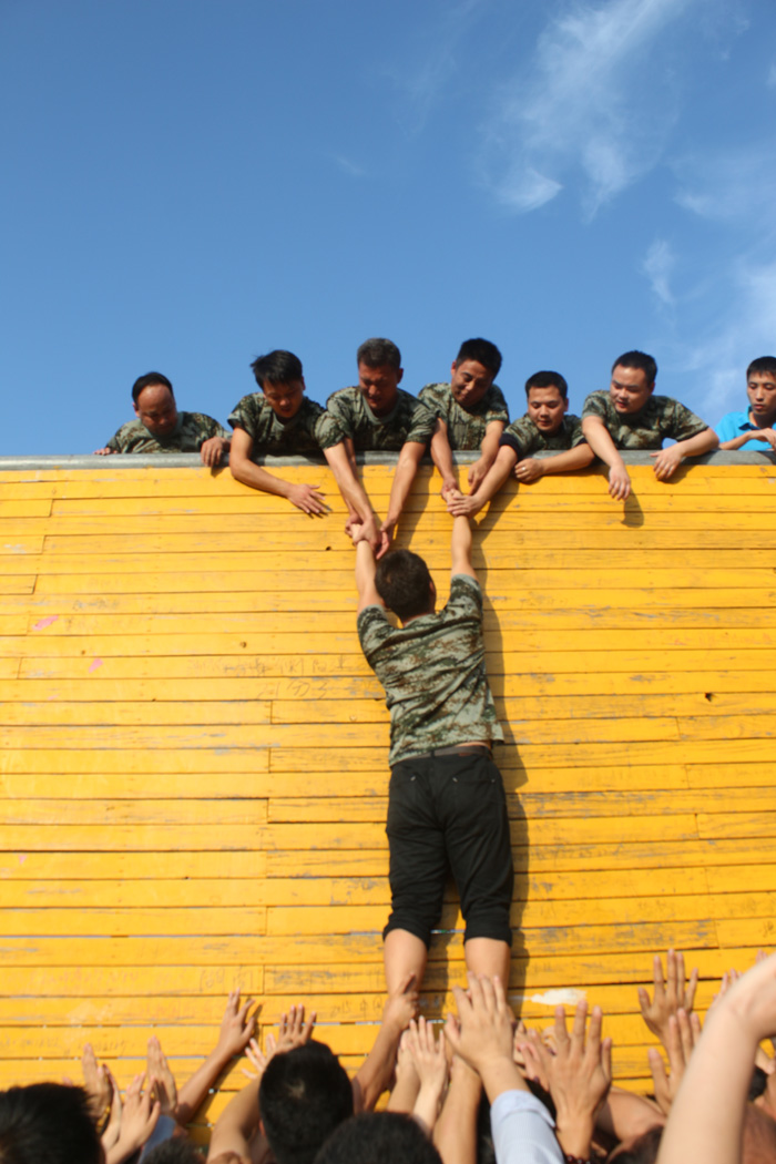在活動(dòng)的最后一個(gè)項(xiàng)目畢業(yè)墻中,團(tuán)隊(duì)的凝聚力得到了升華。站在一堵光滑壁面且高達(dá)的畢業(yè)墻前面,退縮和畏懼慢慢占據(jù)了隊(duì)員們的心里,于是大家開始有抵觸的情緒,開始逃避。但是最后,在公司董事長(zhǎng)謝志方和副總經(jīng)理郭建文的鼓勵(lì)下,大家都決定齊心協(xié)力,共同克服困難。在培訓(xùn)教練的指導(dǎo)下,隊(duì)員們迅速搭起一道人梯,在一個(gè)個(gè)隊(duì)友成功翻越了畢業(yè)墻之后,人梯隊(duì)友們的肩膀已經(jīng)被踩得青一塊紫一塊甚至已經(jīng)被踩傷了,可是人梯依然堅(jiān)守在那里,沒有退縮。因?yàn)樵谒麄兊膬?nèi)心當(dāng)中有一個(gè)堅(jiān)強(qiáng)的信念在支撐著他們,這個(gè)信念就是我們所有的伙伴,如果能夠通過自己的努力戰(zhàn)勝這個(gè)障礙,飛得更高,那自己苦一點(diǎn)累一點(diǎn)甚至痛一點(diǎn)都沒有關(guān)系。隨著時(shí)間的推移,人梯隊(duì)友們肩膀上的傷痛會(huì)痊愈,但是我們相信留在每個(gè)人心中對(duì)人梯隊(duì)友的感謝和感激是永遠(yuǎn)也無(wú)法消退的,同時(shí)我們也相信,在宇通這個(gè)團(tuán)隊(duì)當(dāng)中,有這樣的人甘愿做人梯,有這樣的人甘愿付出,我們這個(gè)團(tuán)隊(duì)一定會(huì)無(wú)堅(jiān)不摧的,我們更希望在宇通這個(gè)團(tuán)隊(duì)中會(huì)有更多的人甘愿做人梯,甘愿付出,這樣宇通建設(shè)公司才能走得更遠(yuǎn)。